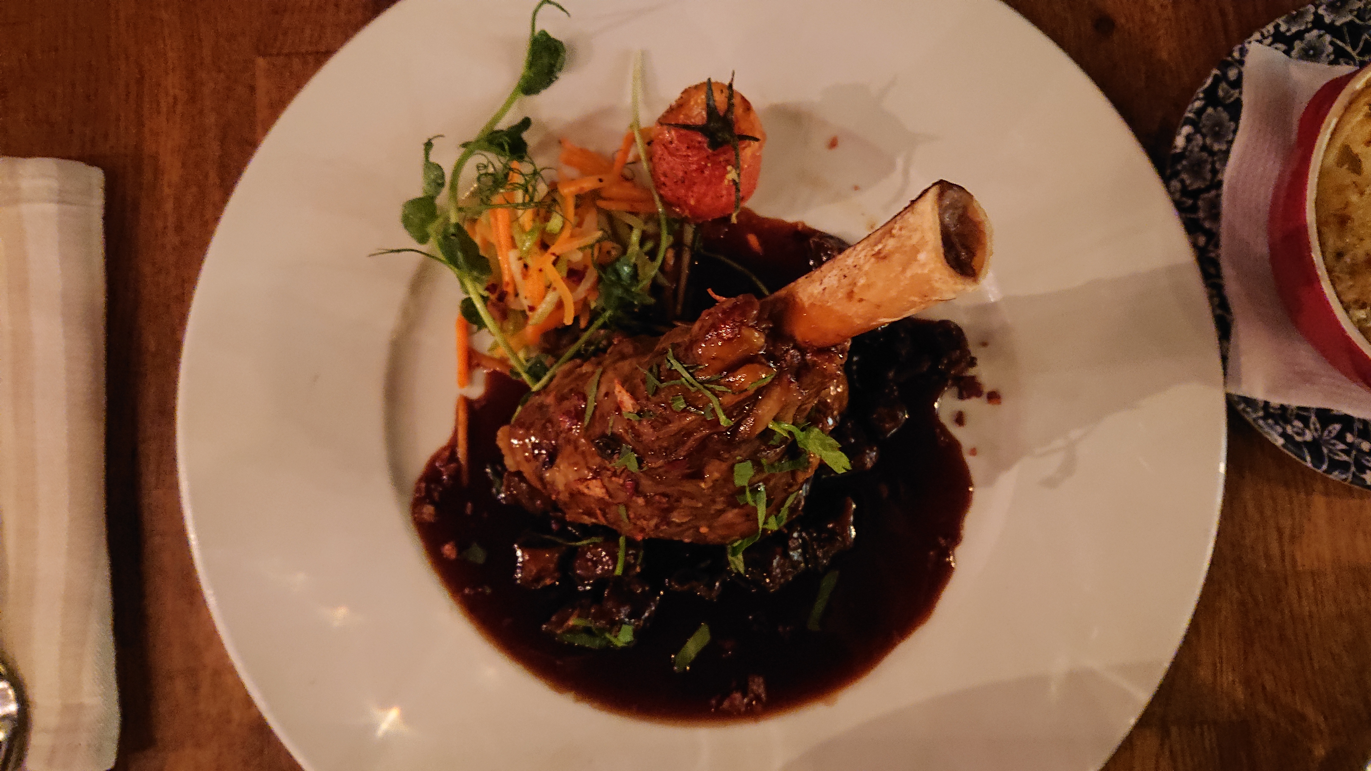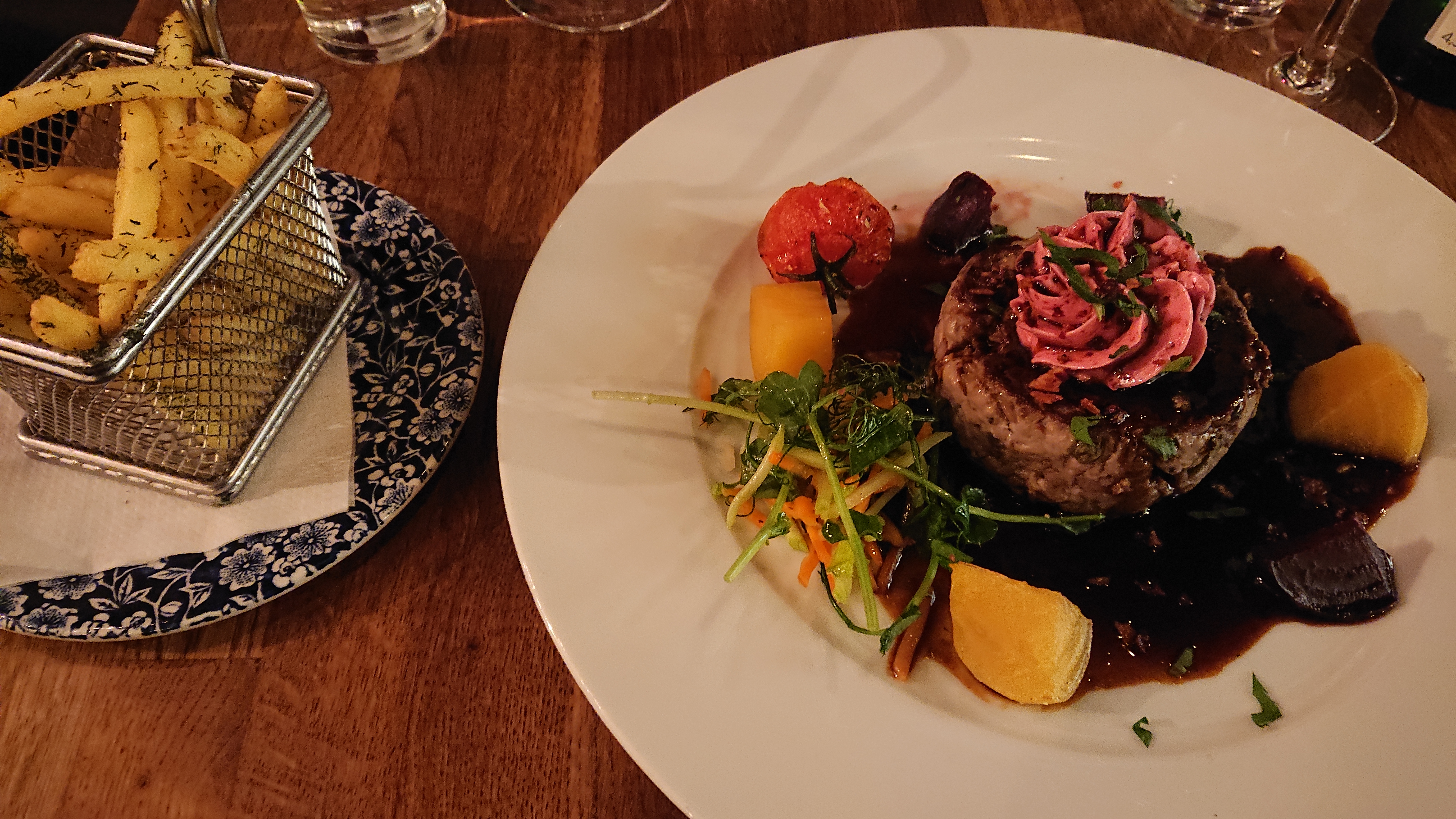 Les plats traditionnels français sont bons, bien présentés et cuisinés avec une touche d’originalité comme la sauce merguez de la souris d’agneau ou le beurre à la betterave du steak tartare. Les sauces et accompagnements (frites et gratin sont intelligemment servis à part) sont gourmands et colorés.