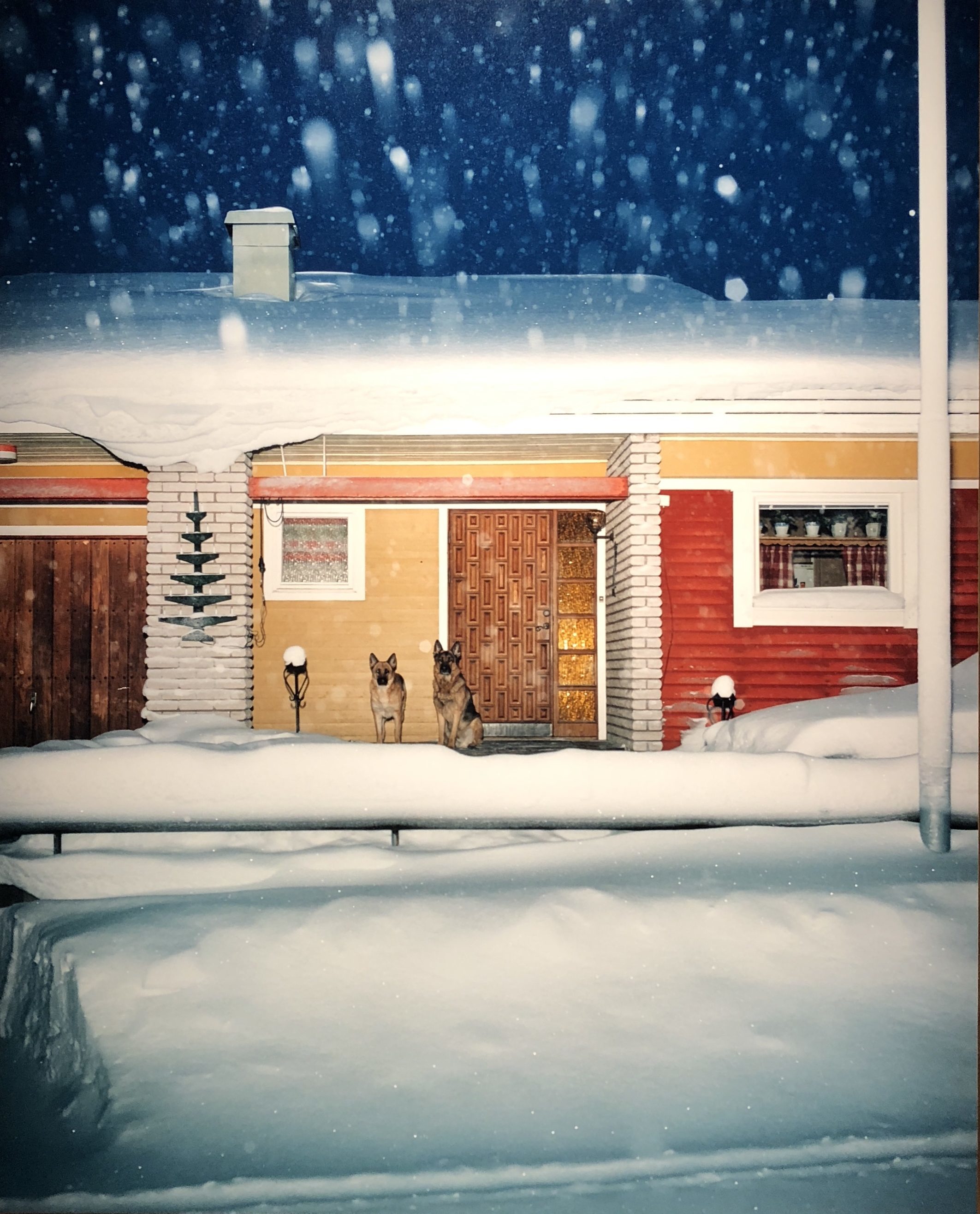 ”Jag tycker att det är hemskt när ljuset försvinner. » (”Je trouve que c’est terrible quand la lumière disparaît.”) Lars Tunbjörk déprimait l’hiver en Suède (et c’est probablement la raison de sa disparition soudaine). Pour y remédier, il prenait des missions à l’étranger, où il retrouvait le goût du travail. Mais pour le quotidien Göteborgs-Posten, il releva en 2004 le défit de faire une série de photos sur l’hiver suédois. Il eut du mal à trouver l’inspiration, mais quand la deadline se rapprochait, alors qu’il était à Kiruna, il y eut comme un déclic et il se mit à photographier tout ce qu’il voyait. Il répéta l’opération deux hivers supplémentaires, ce qui résultat en un livre, Vinter, et en une exposition au Moderna Museet. Ce travail fut récompensé par le Grand Prix de Scanpix en 2008. Interviewé à l’occasion, le photographe déclara que son ambition avait été de mêler sa vision subjective des choses et son état mental à une description contemporaine objective.