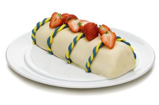 Et voici depuis 2010, le gâteau officiel du 6 juin, Sverigerullen : un roulé aux fraises décoré aux couleurs du drapeau suédois.