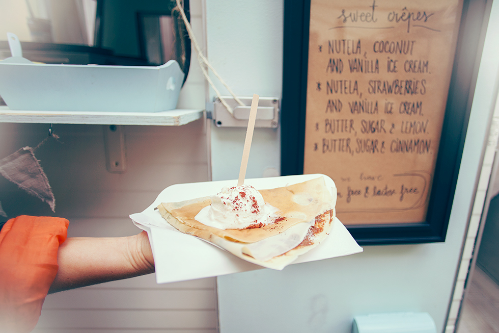 Cerise sur la crêpe, notre coup de coeur revient à un foodtruck ! Avec sa vieille caravane, sa décoration atypique, son accueil espagnol souriant, M creperie est une gourmandise sur roues. Raquel et Genís vous proposent des crêpes simples, faciles à manger sans couverts : des salées au jambon (serrano, évidemment) ou aux épinards avec chèvre et miel, et des sucrées au Nutella, chocolat blanc ou avec des fruits de saison…
