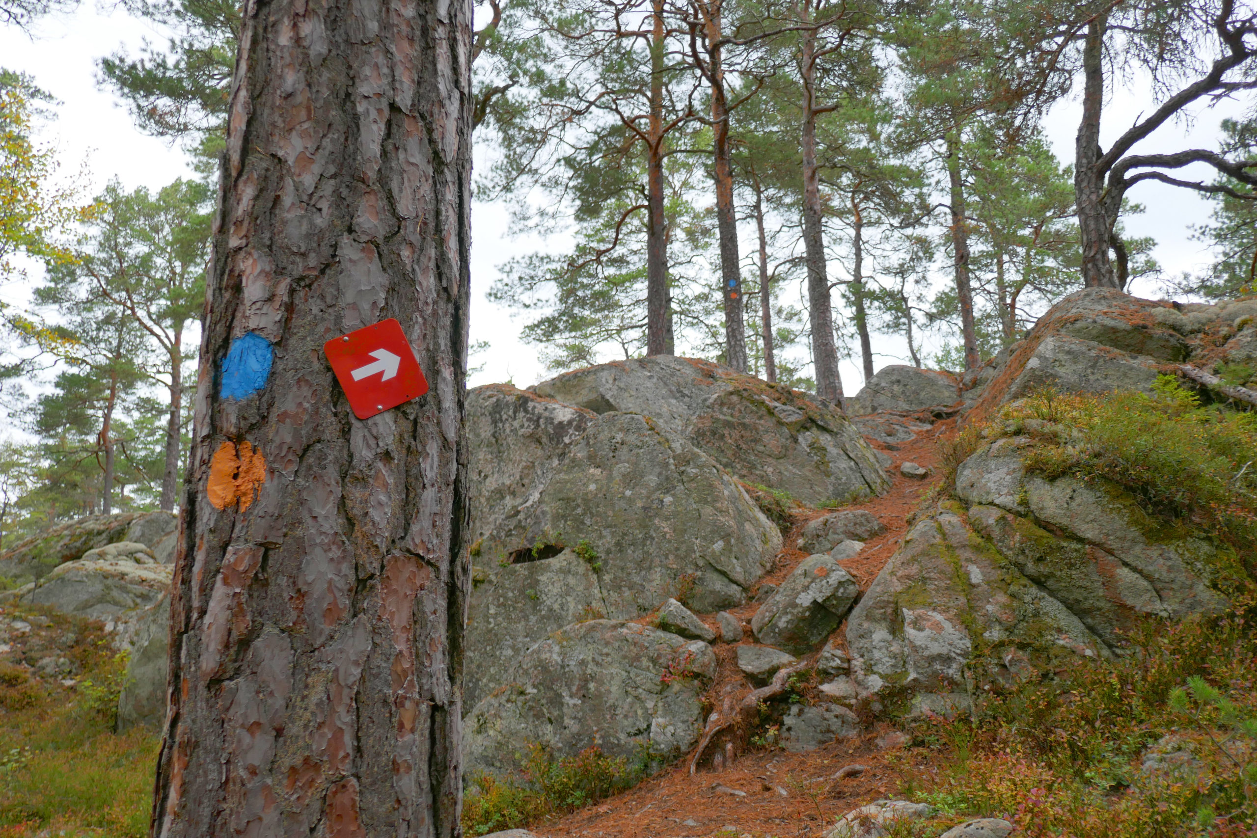 • la version courte : ceux qui ne veulent que la crème de la crème préféreront un aller-retour depuis l’arrêt de bus Nibble jusqu’au lac Dammstakärret, ce qui permet de voir la plus belle partie de l’itinéraire, et sans croiser de route ! De l’arrêt de bus Nibble, prendre quelques mètres plus loin le chemin de terre fermé par une barrière et suivre ensuite les panneaux Dammstakärrsrundan et/ou le balisage orange (voir les dernières étapes de la description ci-dessous). Compter un temps de marche de 2 heures et 20 minutes (2 x 1h10), à un pas soutenu.