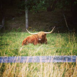 Rapidement vous pénétrez dans la seconde réserve, Järvafältet Naturreservat, et après quelques pins et chênes, le chemin se faufile entre des enclos en bois abritant notamment des vaches écossaises.