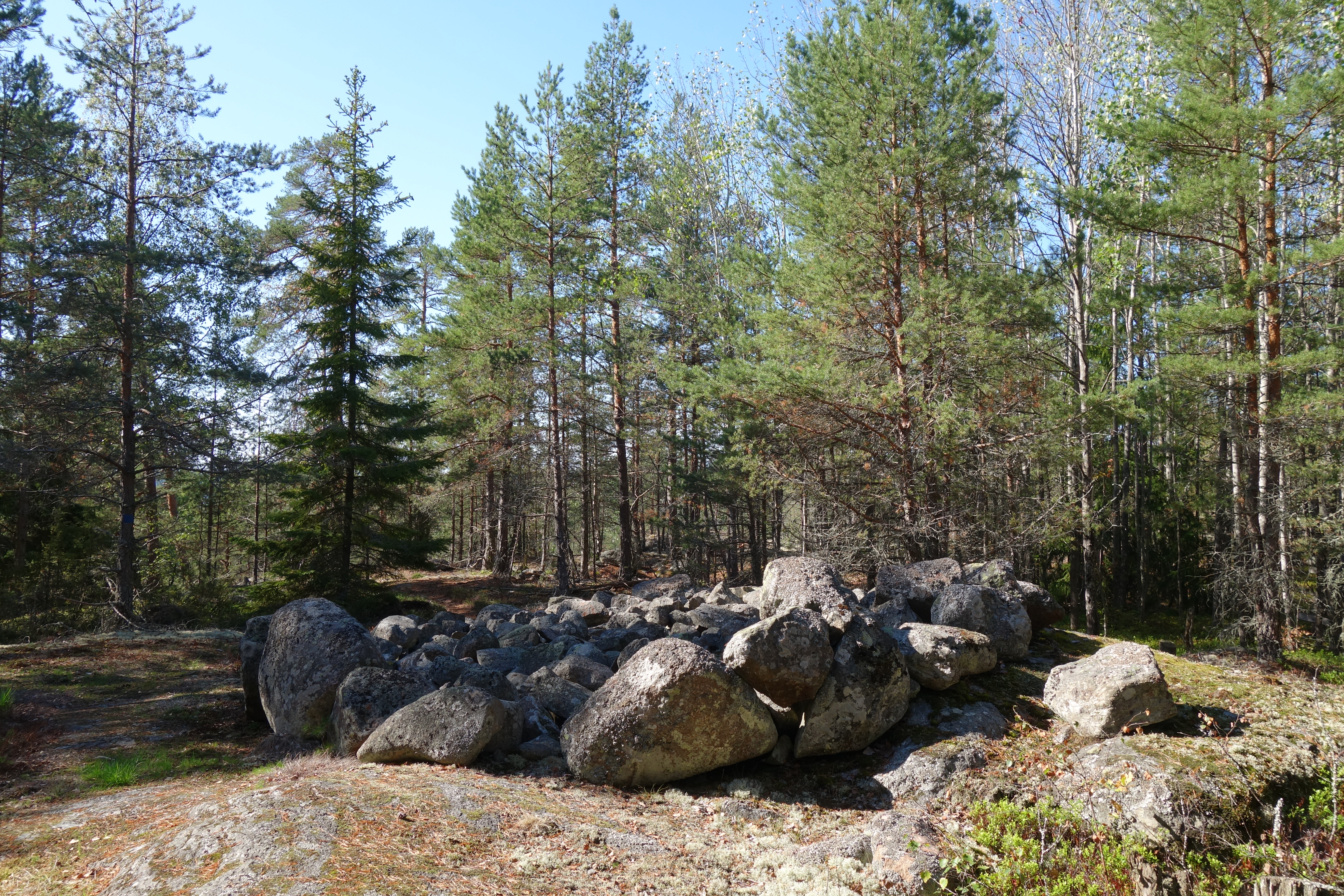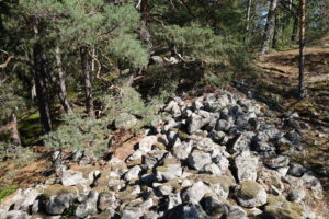 Trouver son petit coin de paradis pour un pique-nique ou un fika au soleil, sur les rochers au milieu des magnifiques pins. Un sentier vers la droite mène aux ruines proprement dites, consistant en un gros tas de pierres !