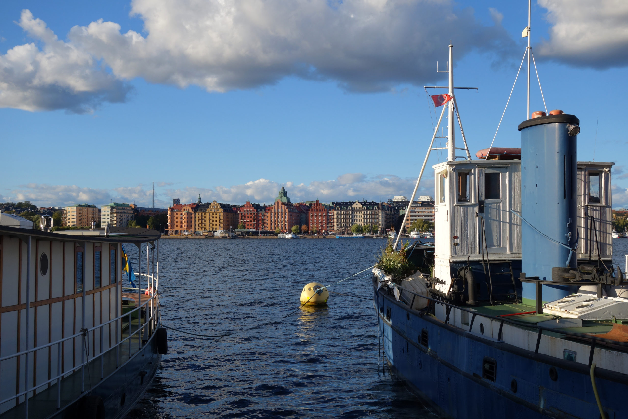 Une fois sur le quai, profitez de la nouvelle perspective offerte sur l’hôtel de ville, et poursuivez à gauche, entre les arbres et les bateaux amarrés en tous genres : une promenade bien agréable (mais souvent dans l’ombre) agrémentée notamment de quelques bateaux historiques (panneaux explicatifs), avec en arrière-plan les façades colorées de Kungsholmen.